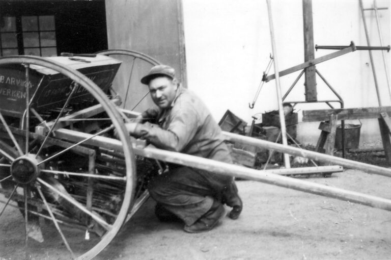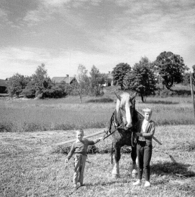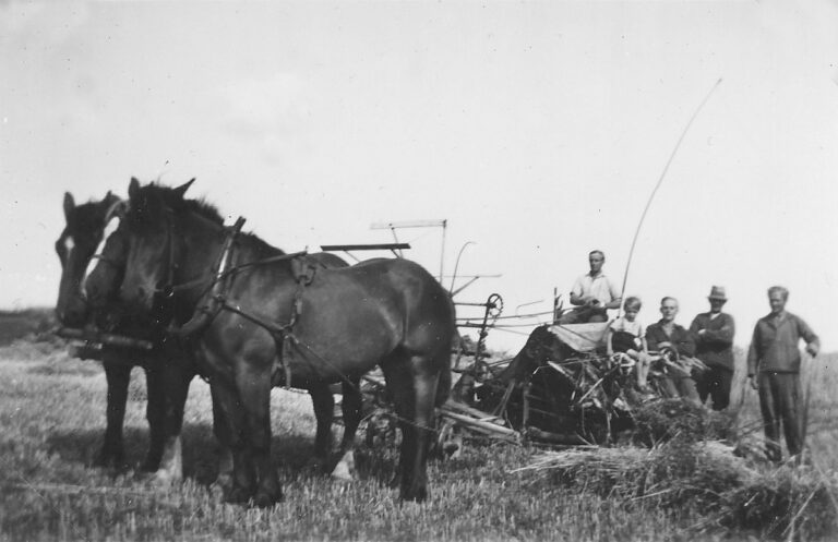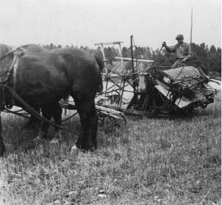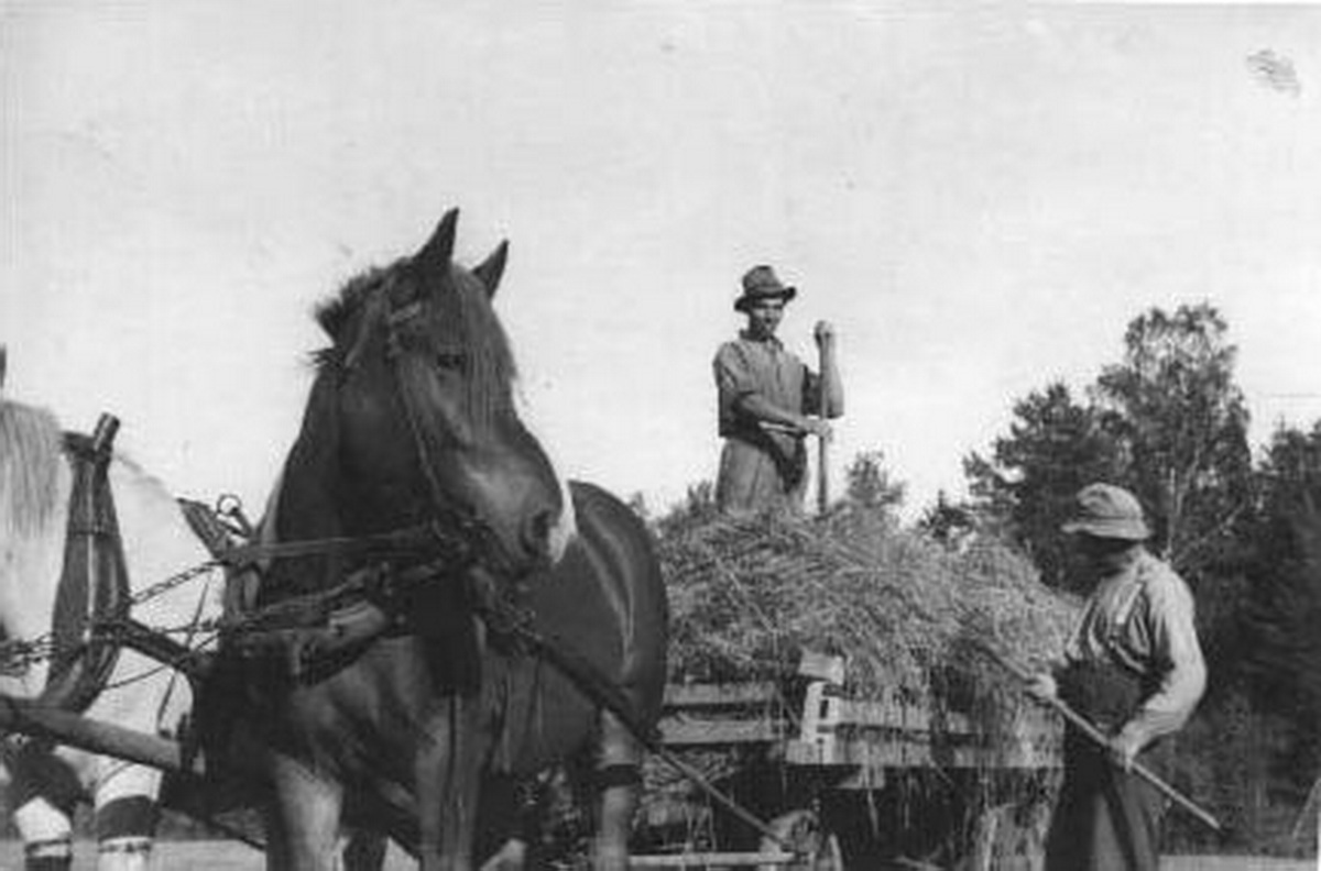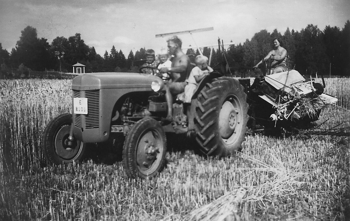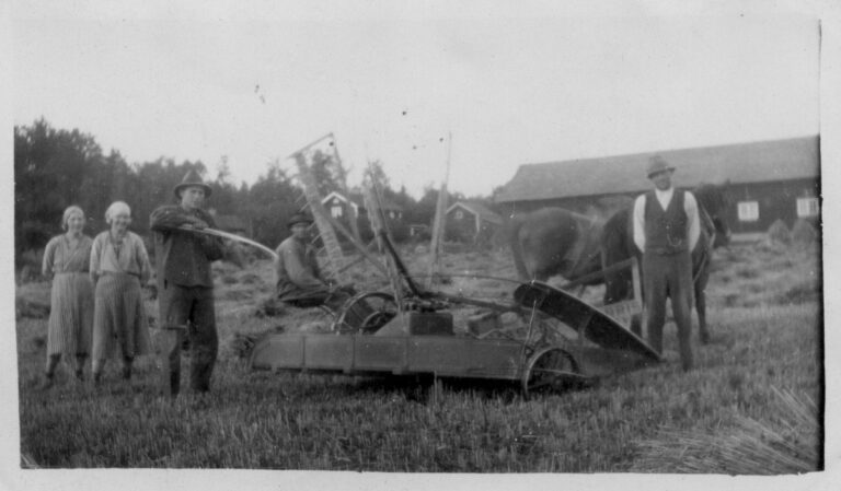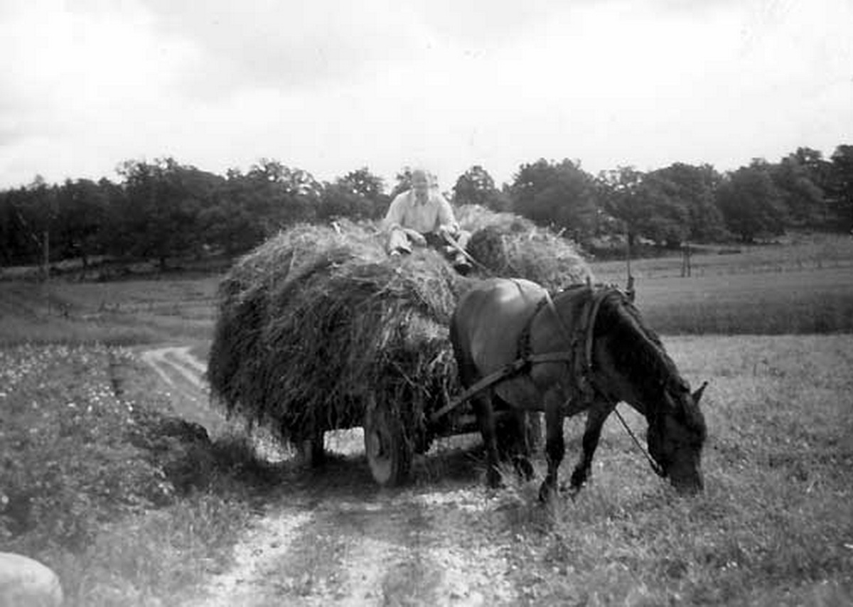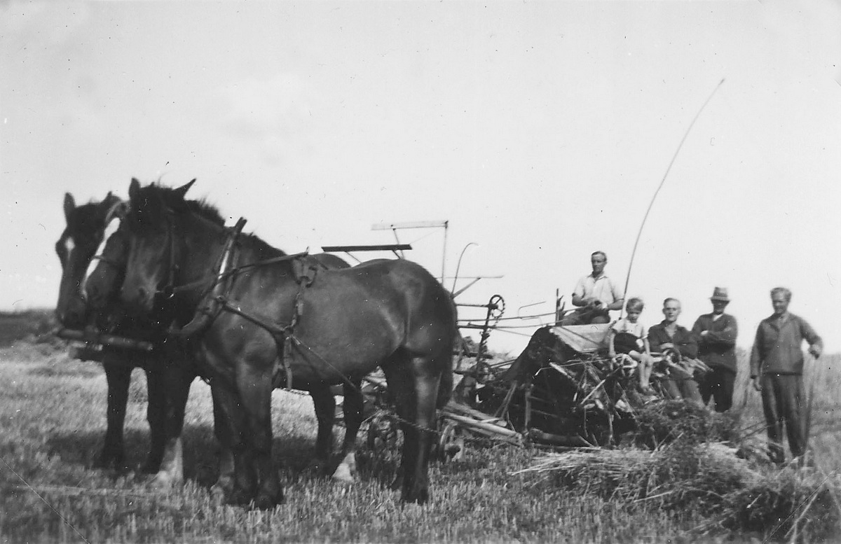 Gunnar Gustavsson i Vreta med slåttermaskin ca 1950