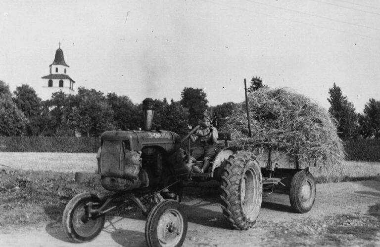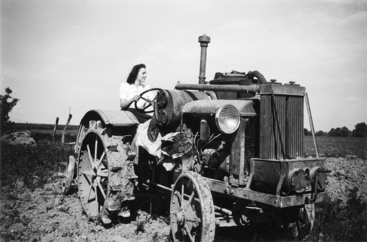 Plöjning med gengasdriven traktor. Irene Nyberg 1946