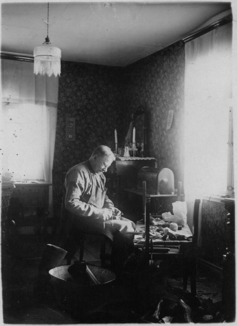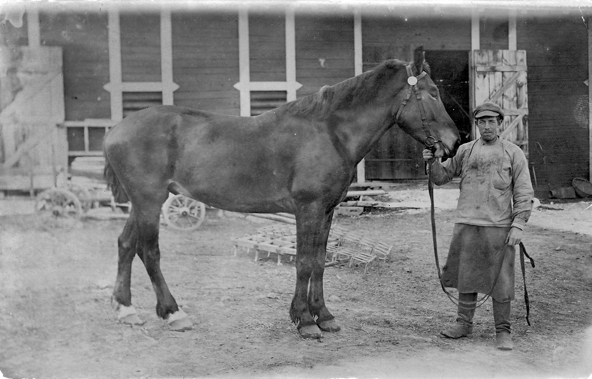 Einar Gustavsson som stalldräng vid Vist Prästgård omkring 1918 – 1920