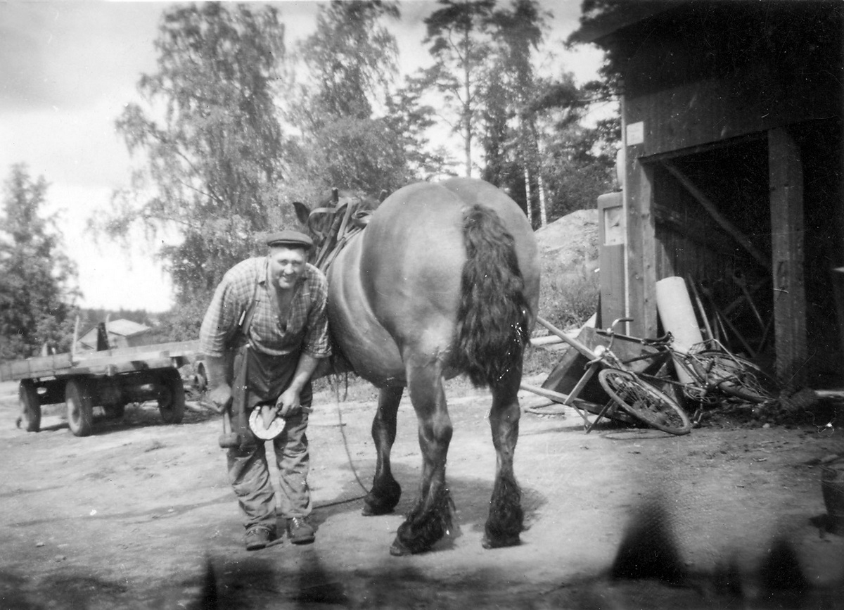 Smedjan vid Klampenborg. Smeden Evert Axelsson. skor hästar.