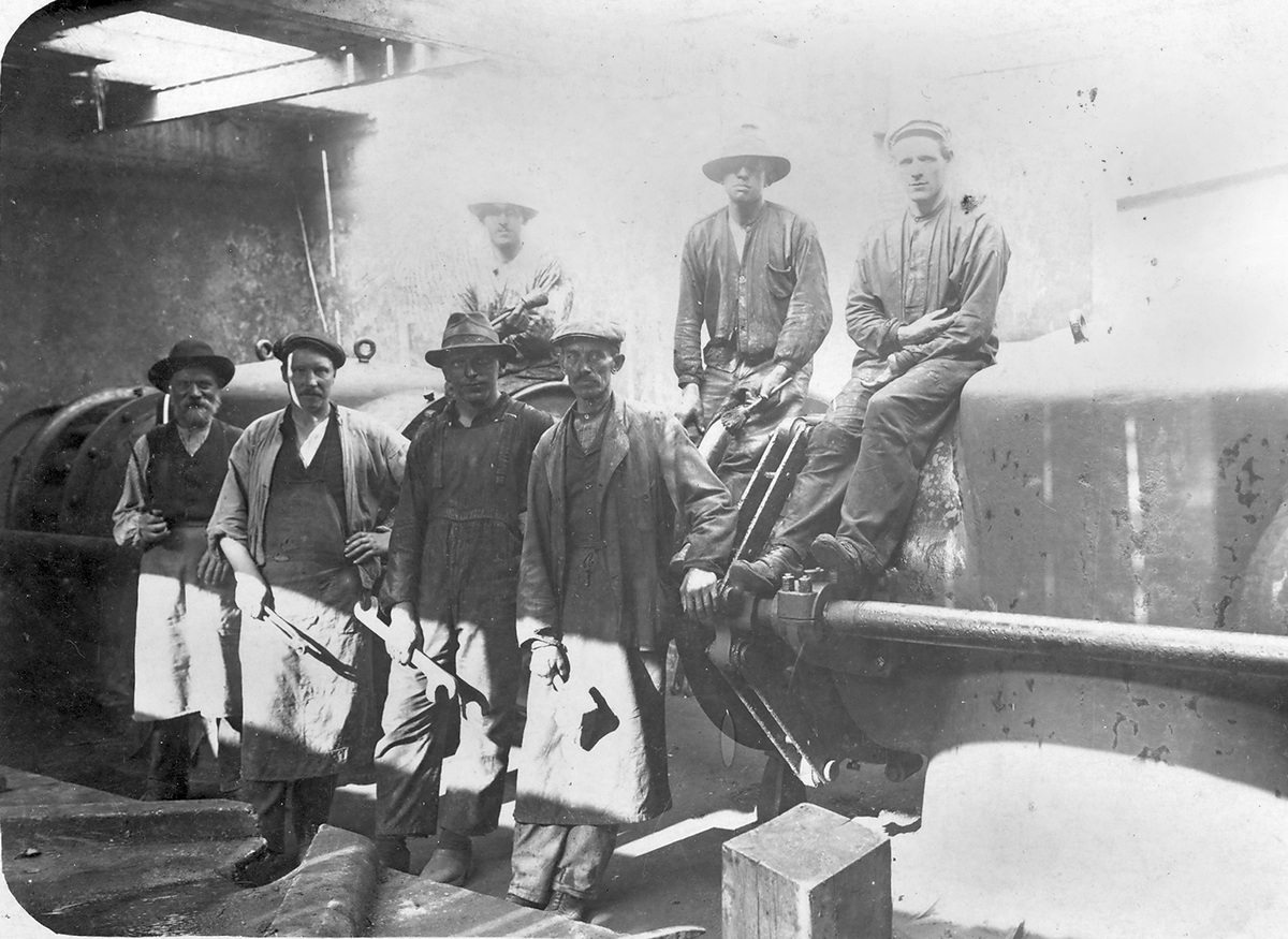 Arbetare i tilloppskanalen i Sturefors kraftverk
