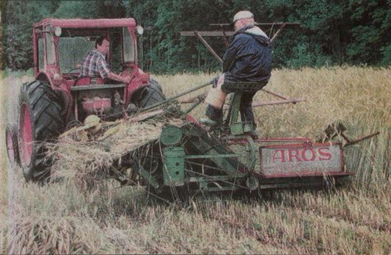 Anders Ekdahl kör med självbindare 2007-09-17. På självbindaren håller Ingmar Österberg reda på det trilskande repet.