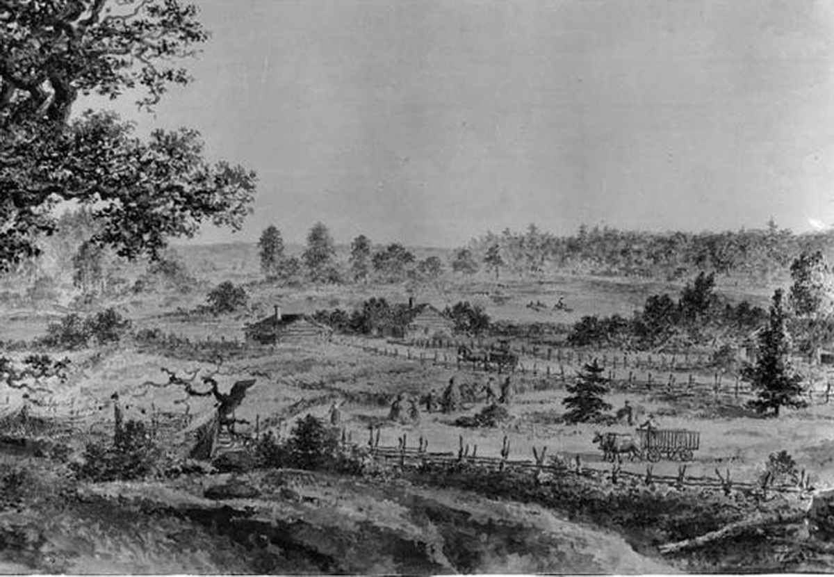 Skördebild från Bjärka-Säby på 1700-talet. (akvarell)