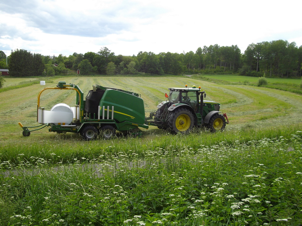 Här tillverkas ensilagebalar 2016-06-12. Foto: Lars Jonsson