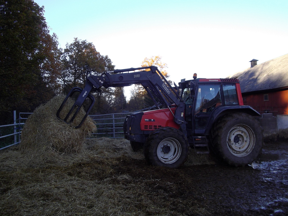 Här Anders Ekdahl på sin andra Valtra traktor som hanterar halm till köttdjuren. 2016-10-30. Foto: Lars Jonsson