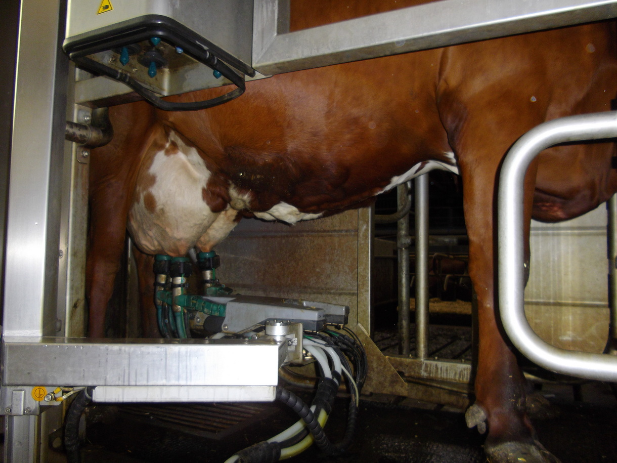 Här syns den avancerade mjölkroboten i arbete 2016-05-30. Foto: Lars Jonsson