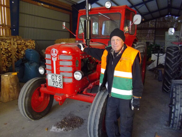 Anders Ekdahl som traktornostalgiker vid sin renoverade BM Volvo 350 (Boxer) 2016-10-30. Foto: Lars Jonsson