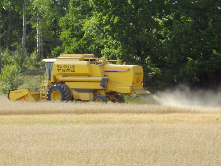 Trösktid i september. Lars-Johan Jonsson har valt att ha en egen tröska för att kunna skörda i rätt tid 2016-08-22. Foto: Lars Jonsson