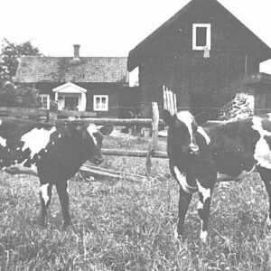Det var djurhållningen på torpen som var den bärande inkomstkällan för torparna. Svin och höns höll man i första hand för det egna hushållet . En viss försäljning av fläsk och ägg förekom. Den största inkomstkällan var dock avkastningen från ladugården. Fram till mitten av 30-talet förädlades mjölkprodukterna hemma på torpet. Genom att låta mjölken passera genom en handdriven separator, så frånskildes mjölkens fettämnen (grädden). Av grädden kärnades smör som sedan gick till avsalu, antingen till ”handlaren i Grönlund”, eller till uppköpare i staden. Skummjölken gick till uppfödning av torpets kalvar. Merparten av torpens kalvar gick till slakt. En och annan kvigkalv kunde bli ”påläggskalv”, man behöll den för att i sinom tid byta ut en äldre mjölkko som fallit för åldersgränsen och som inte längre gav så god avkastning. I mitten av 30-talet upprättades en mjölklinje, där torparnas mjölk hämtades med bil från mjölkbryggorna vid stora landsvägen. Här på bilden David Kleists kalvhage. |